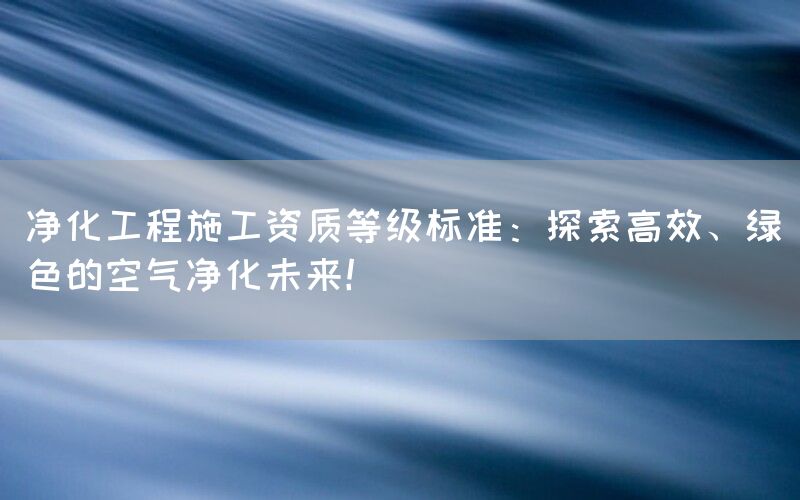 未来展望随着科技和意识的不断进步,我们对于高效、绿色空气净化工程施工资质等级标准也将不断提升。未来可能会出现更先进、更智能的空气净化技术和设备,并且与其他领域如人工智能、大数据等进行深度融合。