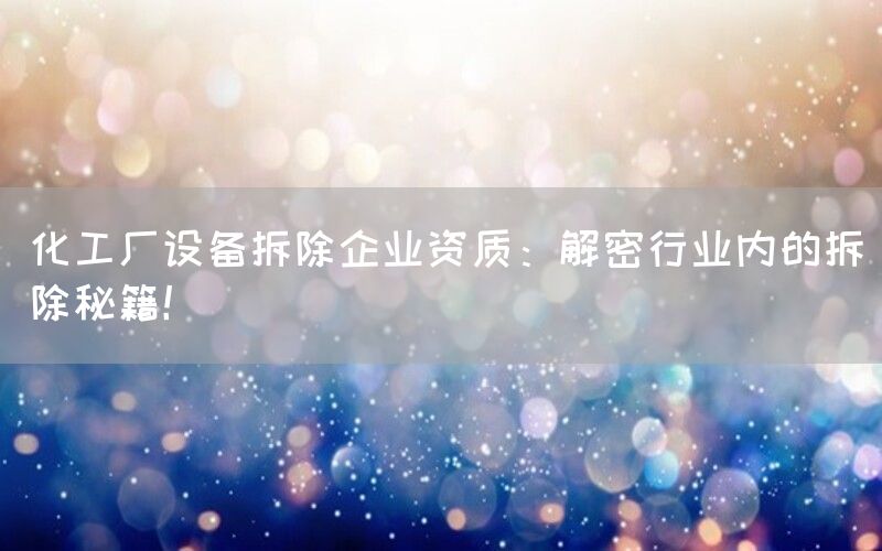 化工厂设备拆除是一个复杂而危险的任务,需要专业的知识和技能来完成。寻找一家具有合适资质的企业来进行设备拆除至关重要。本文将为您揭示化工厂设备拆除企业资质的重要性,并分享一些行业内的秘籍。