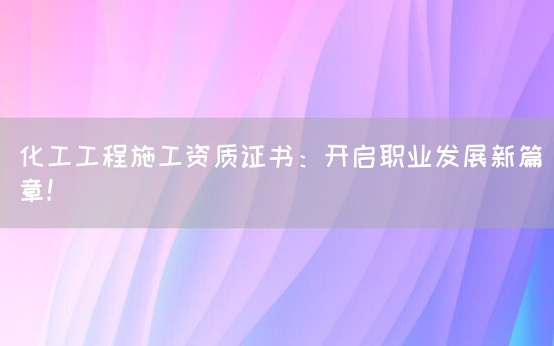 化工行业作为现代产业的重要组成部分,对于专业人才的需求日益增长。在这个竞争激烈的行业中,拥有一张化工工程施工资质证书将为您的职业发展打开新的大门。本文将深入探讨该证书的重要性、获取途径以及未来发展前景。