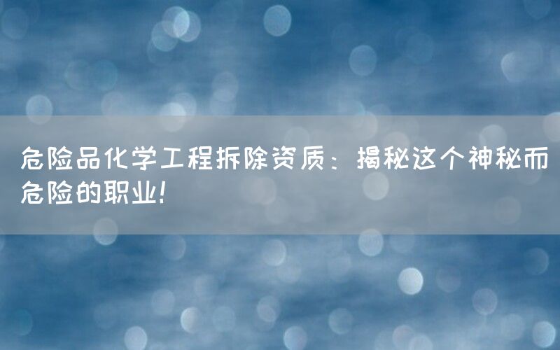 危险品化学工程拆除是一个神秘而又充满挑战性的职业。从事这个职业需要具备丰富的知识、经验和相关资质,并时刻保持高度警惕以确保操作安全。