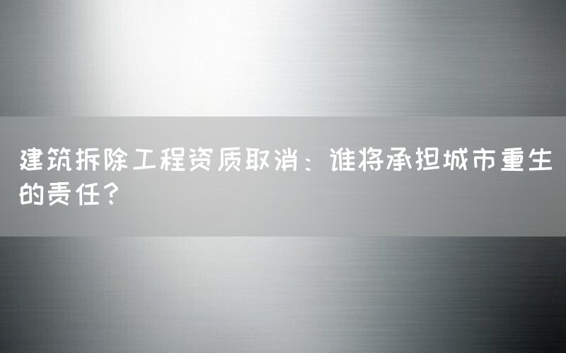 近年来,随着城市发展的不断推进,建筑拆除工程成为了一个备受关注的话题。最近一项引起广泛争议的政策却在许多地方开始实施——取消建筑拆除工程资质。这一决定引发了人们对于城市重生责任归属问题的思考。