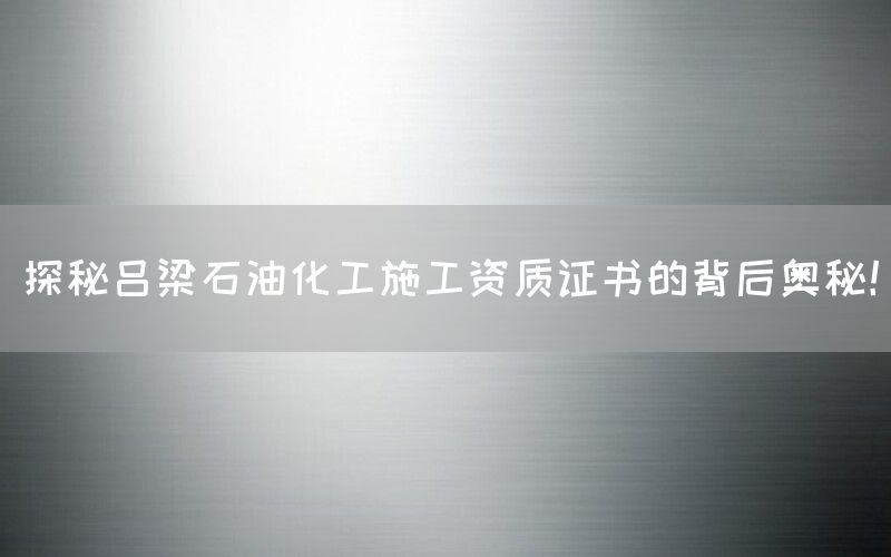 吕梁石油化工施工资质证书背后隐藏着怎样的奥秘呢?本文将从多个角度深入探讨这个问题。