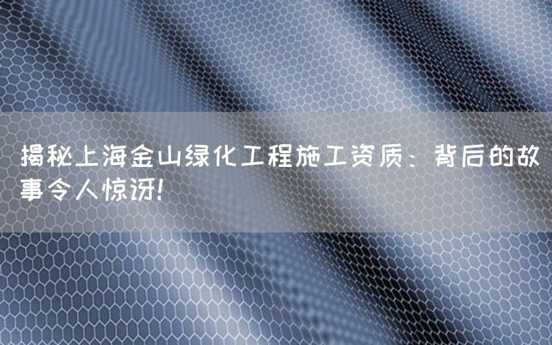 上海金山区作为中国东部沿海地区的一个重要城市,一直以来都非常注重城市绿化工程的建设。近年来有关金山绿化工程施工资质的一些问题引起了公众的关注。本文将深入探讨这些问题,并揭示背后隐藏着令人惊讶的故事。