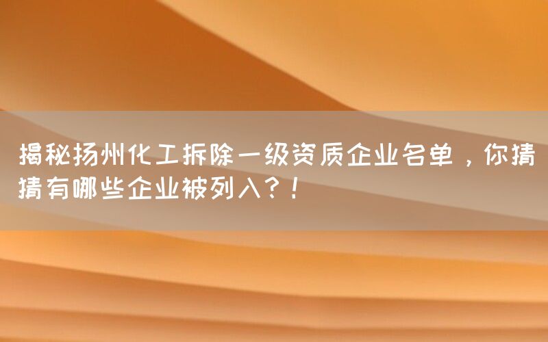 近日,关于扬州地区化工行业的一则消息引起了广泛关注。据可靠消息透露,扬州市政府决定对部分化工企业进行拆除,并取消其一级资质。这一举措旨在加强对环境污染的治理和保护生态环境。究竟有哪些企业被列入了这份名单呢?本文将为您揭秘。