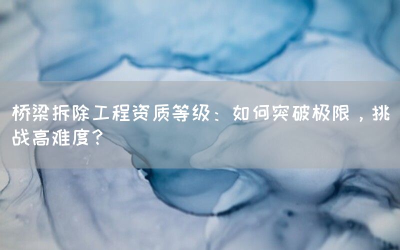 桥梁拆除工程是一项高风险、高技术要求的工作,需要具备专业的知识和经验。在进行这类工程时,拥有适当的资质等级是至关重要的。如何突破极限、挑战高难度,并取得更高级别的资质等级呢?本文将围绕这个问题展开讨论。
