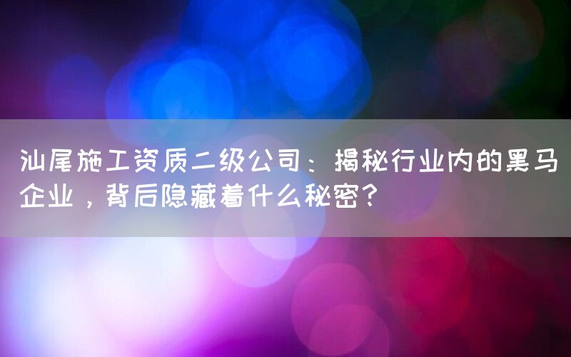 汕尾作为广东省一个重要的沿海城市,建筑行业发展迅速。在这个行业中,有一些备受关注的“黑马”企业,它们以出色的表现和突出的竞争力在市场上崭露头角。本文将深入探讨这些企业背后隐藏着什么秘密。