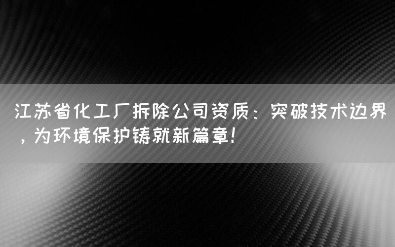 随着社会的发展和环境意识的增强,对于化工厂拆除及环境保护的需求日益迫切。江苏省化工厂拆除公司作为专业从事该领域服务的企业,在不断突破技术边界中,为环境保护铸就了新篇章。