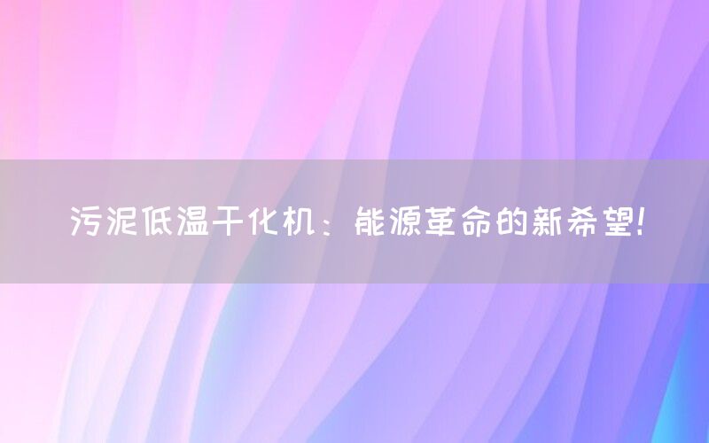 在当前全球能源危机和环境保护的背景下,寻找可持续、高效的能源解决方案成为了当务之急。而污泥低温干化机作为一种创新技术,被视为能源革命的新希望。