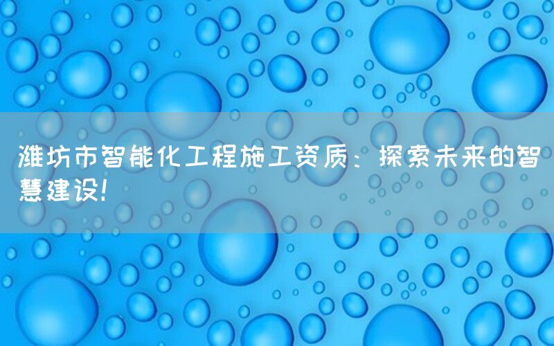 随着科技的不断发展和社会的进步,智能化建设已经成为了现代城市发展的重要方向。作为山东省内具有较高经济实力和创新能力的城市之一,潍坊市正积极推动智能化工程施工,并注重提升企业在该领域中的资质水平。