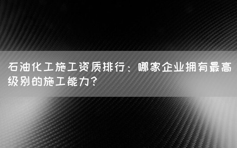 石油化工行业是国民经济重要支柱产业之一,其发展对于国家能源安全和经济增长具有重要意义。在石油化工项目的建设过程中,施工是至关重要的环节之一。而拥有高级别施工能力的企业往往具备丰富的经验、先进的技术和优秀的管理团队。