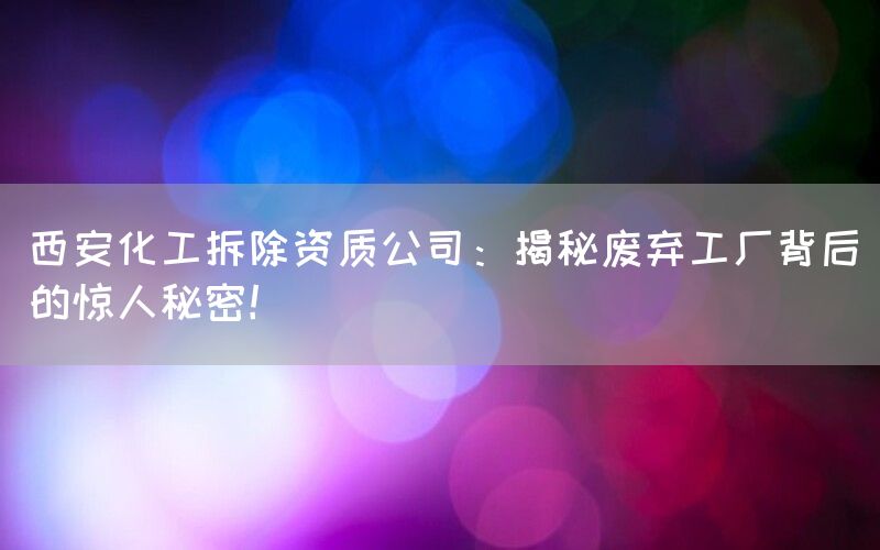 废弃工厂是一个常见但鲜为人知的问题。这些废弃工厂通常隐藏着许多令人震惊的秘密,包括环境污染、健康风险和法律责任等。在西安,有一家专门从事化工拆除的资质公司,他们揭示了这些废弃工厂背后的真相。