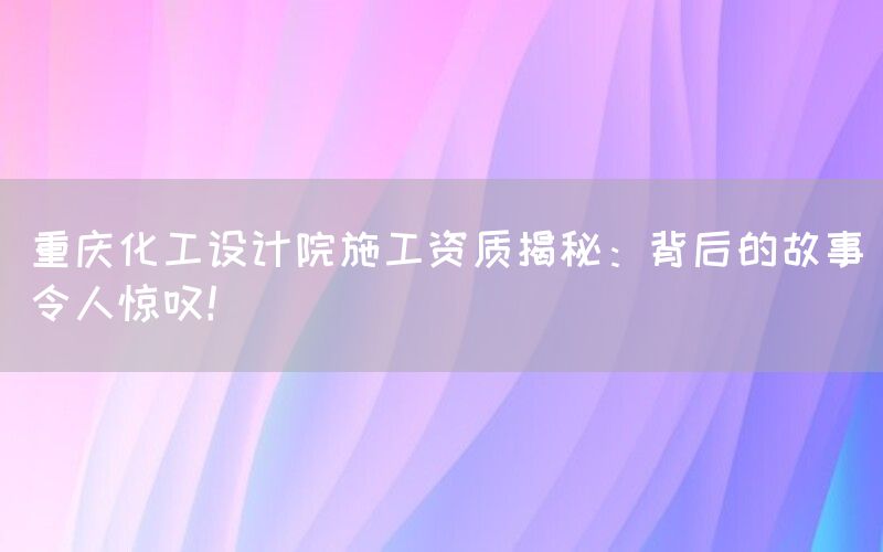重庆化工设计院是一家专业从事化工项目设计与施工的机构,其在行业内享有盛誉。很少有人知道这家公司背后隐藏着一个令人惊叹的故事。本文将深入探讨该公司的施工资质,并揭示其取得成功背后所付出的努力。