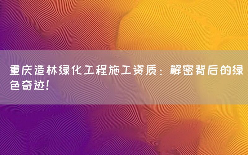 重庆市作为中国西南地区的经济中心和交通枢纽,城市发展迅速,但也面临着环境污染和生态破坏等问题。为了改善城市环境质量,提升居民生活品质,重庆政府积极推进造林绿化工程,并对相关企业进行施工资质管理。