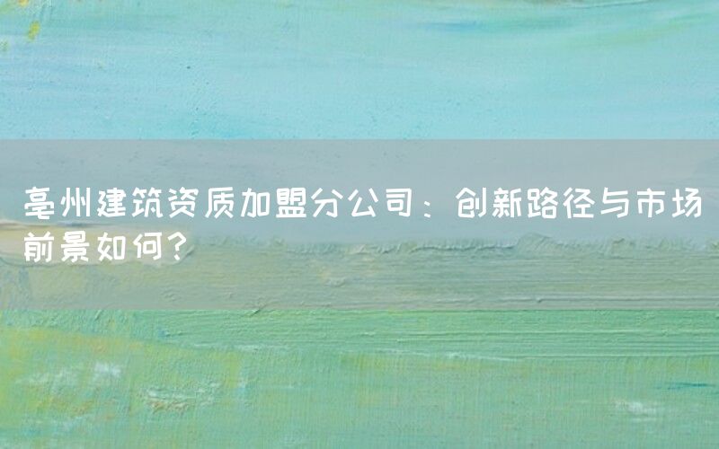 近年来,随着经济的快速发展和城市建设的持续扩展,亳州市建筑行业蓬勃发展,市场需求日益增加。在这样的大背景下,许多企业希望通过加盟方式获取建筑资质,并在亳州设立分公司,以谋求更广阔的市场空间和更高的经济效益。