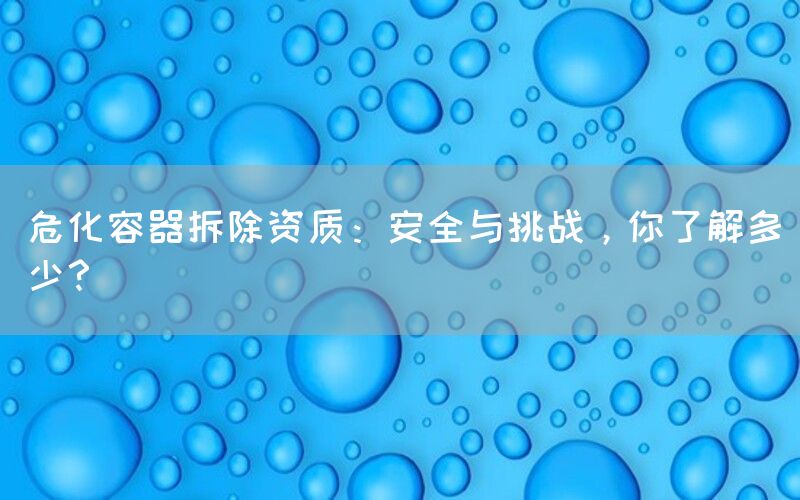 这些途径为有意进入这一行业的企业提供了多样化选择,使得企业可以根据自身实际情况和发展战略,选择最适合的方式获取资质,并参与危化容器拆除工作。
