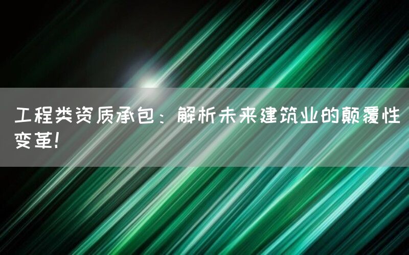 随着科技进步和社会需求的不断演变,建筑业正迎来一场前所未有的变革。在这场变革中,工程类资质承包将扮演关键角色,推动行业向更高效、可持续的方向发展。