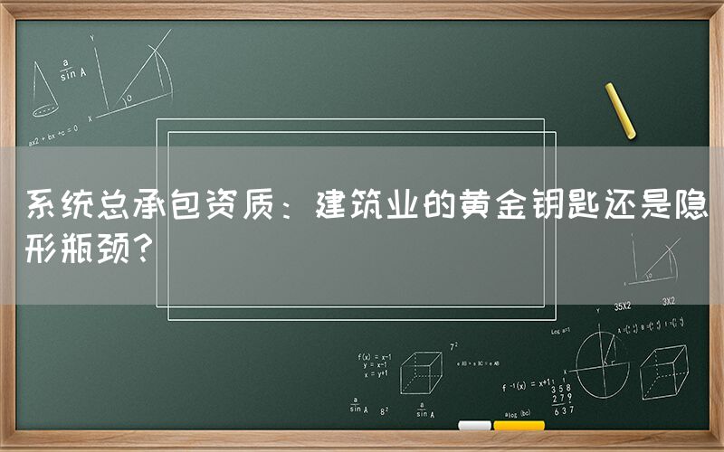 在中国建筑业的复杂市场环境中,系统总承包资质被誉为企业发展的“黄金钥匙”,其象征着企业在项目承接、资源整合和市场竞争中的核心竞争力。这一资质同时也是一把“隐形瓶颈”,对企业管理和运营提出了更高的要求和挑战。