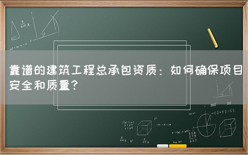 建筑工程总承包资质是一项重要的行业认证,但仅凭资质本身并不能确保项目的安全性和质量。实际上,要保障建筑工程项目的安全性和质量,需要从多个方面综合考虑和实施措施。