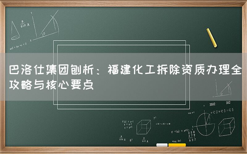 巴洛仕集团刨析:福建化工拆除资质办理全攻略与核心要点