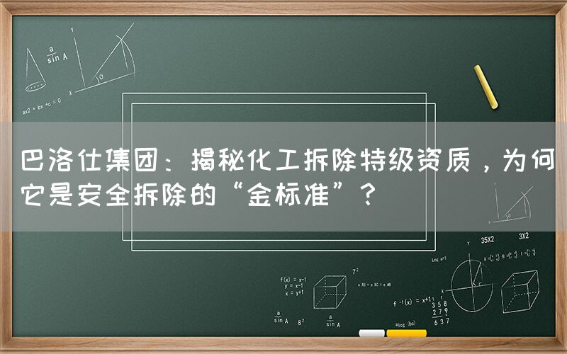 巴洛仕集团:揭秘化工拆除特级资质,为何它是安全拆除的“金标准”?