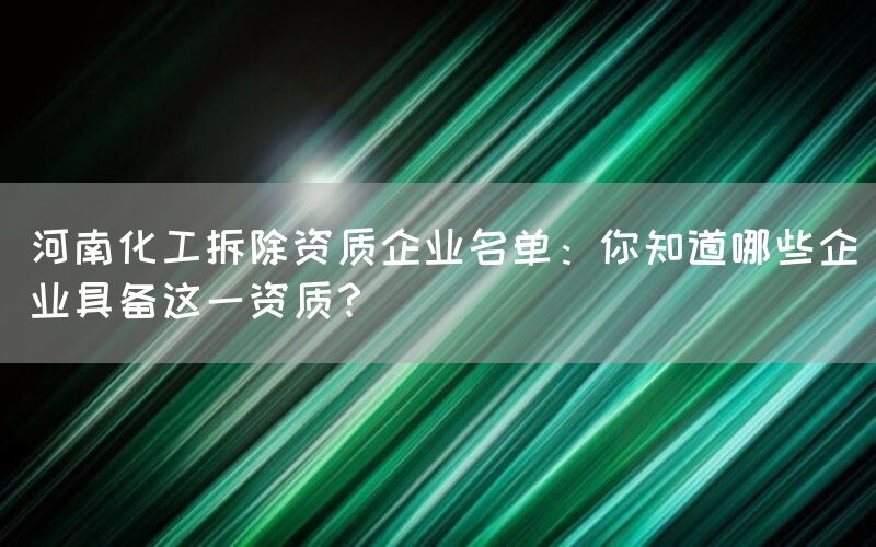 1. 河南巴洛仕集团有限公司 据了解,巴洛仕集团有限公司服务涵盖资质合作、项目联营、资质分立及加盟等资质服务,可一站式解决企业资质问题。 2. 河南绿城建设有限公司 绿城建设是一家专注于环境治理和生态修复领域的综合性企业。他们在河南省内积累了丰富经验,并取得了相关颁发机构认可的化工拆除专项施工承包等级证书。 3. 河南鑫泰建筑装饰设计有限公司 鑫泰建筑装饰设计有限公司是一家综合性建筑施工企业,拥有多项化工拆除资质。他们在河南省内参与了多个化工厂的拆除项目,并取得了良好的口碑。 4. 河南天地环保科技有限公司 天地环保科技是一家专注于环境保护和治理领域的企业,具备化工拆除资质。他们致力于提供高效、安全、环保的化工厂拆除服务,并在行业内树立了良好的声誉。 5. 河南鸿达建设集团有限公司 鸿达建设集团是一家综合性建筑施工企业,也具备化工拆除资质。他们在河南省范围内承接过多个大型化工厂的拆除任务,并积累了丰富经验。 以上仅为部分具备河南化工拆除资质的企业名单,市场上还存在其他专业、可靠的企业。选择合适的企业进行化工厂拆除需要考虑诸多因素,如其经验、信誉度以及价格等。在进行河南化工厂拆除时,请务必选择具备相关资质和经验丰富的企业,以确保拆除过程的安全性和合规性。