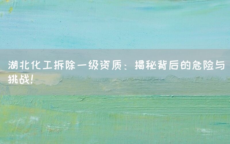 湖北化工拆除一级资质是一个充满危险和挑战的领域。在这个行业中,专业性和安全性至关重要。本文将深入探讨湖北化工拆除一级资质的相关内容,揭示其中的风险和挑战。