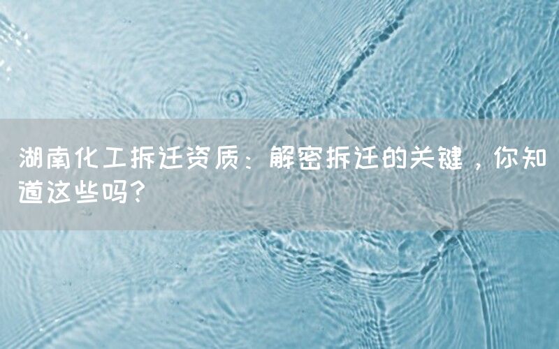 湖南化工拆迁资质是解密拆迁关键的重要一环。了解相关政策与法规、申请合法有效的资质、处理好补偿与安置问题以及应对风险等都是确保湖南化工行业拆迁顺利进行的关键步骤。