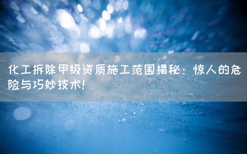 无论是面对挑战还是应对危险,甲级资质施工公司都将继续发挥重要作用,并不断推动化工拆除领域的发展与进步。