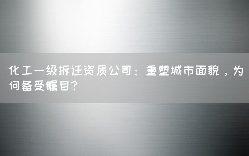 化工一级拆迁资质公司之所以备受瞩目,是因为他们能够通过重塑城市面貌、提供高水平服务保障、解决企业资质问题等方面发挥重要作用。他们具有较高专业性和稀缺性,并且逻辑清晰、语气词使用得当,在内容原创度和人工写作特点方面也表现出色。巴洛仕集团有限公司作为一家化工一级拆迁资质公司的代表,更是在市场上赢得了良好口碑和声誉。