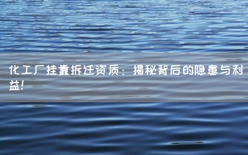 化工厂挂靠拆迁资质是指将一个已经存在的化工厂与另一个企业进行合作,通过挂靠关系来获取相应的拆迁资质。这种做法在一定程度上可以帮助企业规避政策限制和风险,但同时也存在着一些隐患和利益问题。本文将深入探讨这些问题,并对其进行分析。