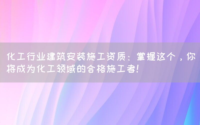 拥有化工行业建筑安装施工资质对于企事業單位来说至关重要。它不仅是参与项目竞争、提高市场竞争力的必备条件,更是保障项目顺利进行和人员生命财产安全的基础。