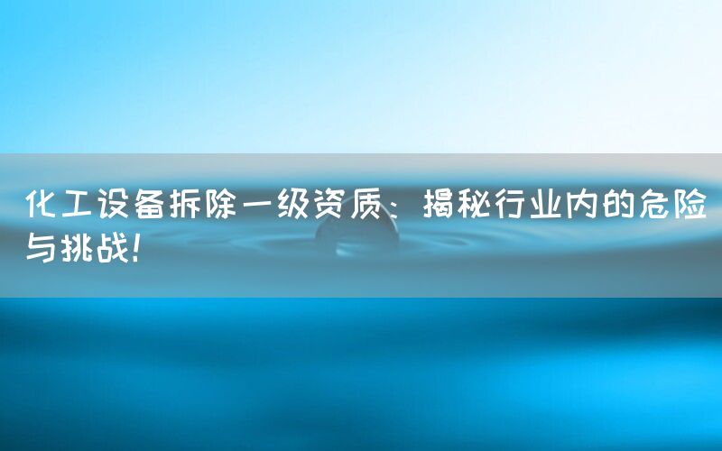 化工设备拆除是一项高风险的任务,需要经过严格的许可和监管。在中国,获得化工设备拆除一级资质是进行此类活动的必要条件。本文将深入探讨这个行业,并揭示其中存在的危险和挑战。