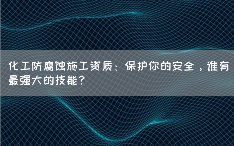 化工防腐蚀施工是一项关乎安全和环境保护的重要任务。在各种化学品和有害物质存在的环境中,合格的施工队伍和专业技能是确保设备、管道等设施长期稳定运行的关键。拥有强大技能和相应资质的人员才能有效地进行化工防腐蚀施工。