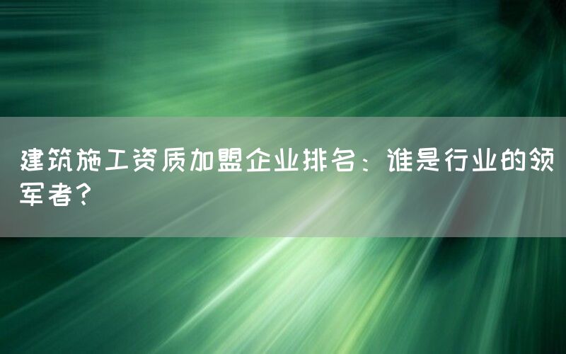建筑施工行业是一个竞争激烈的市场,拥有合适的资质是企业发展的关键。在这个背景下,越来越多的企业选择通过加盟方式获取所需资质,以便更好地开展自己的业务。在众多加盟企业中,谁才是行业真正的领军者呢?本文将为您揭示建筑施工资质加盟企业排名,并介绍其中一家具有代表性和实力强大的公司。