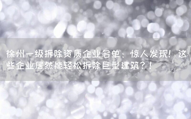 徐州一级拆除资质企业名单:惊人发现!这些企业居然能轻松拆除巨型建筑?!