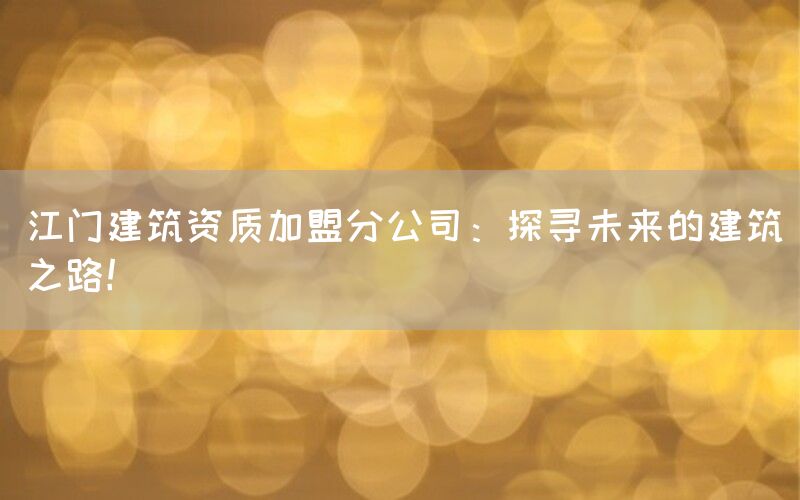 在江门地区,建筑资质加盟分公司是一个备受关注和重视的选择。通过与优秀企业合作,借助其丰富资源和专业团队,在保证自身利益同时实现共赢局面。