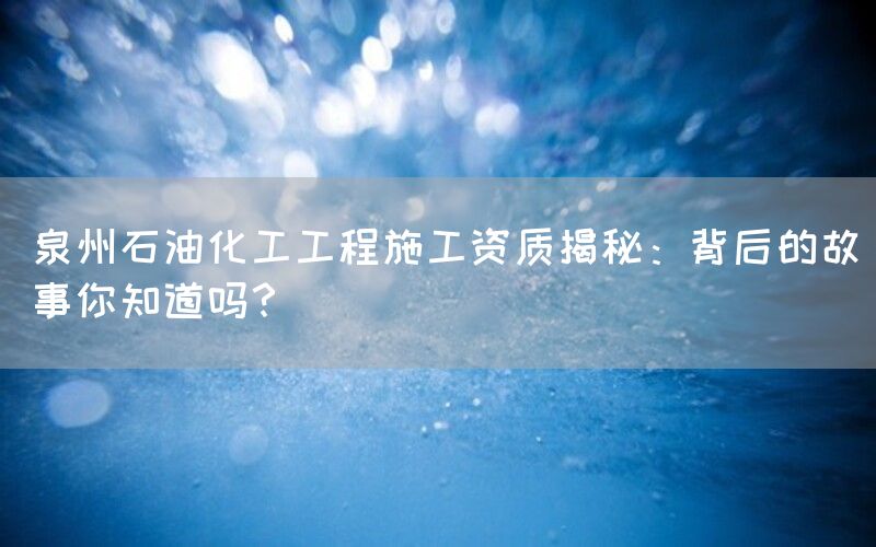 泉州石油化工项目施工资质背后隐藏着一系列故事。首先是政策因素。由于石油化工项目具有较高的风险和安全隐患,政府对该行业的准入条件相对较为严格。这也意味着想要获得施工资质并不容易。