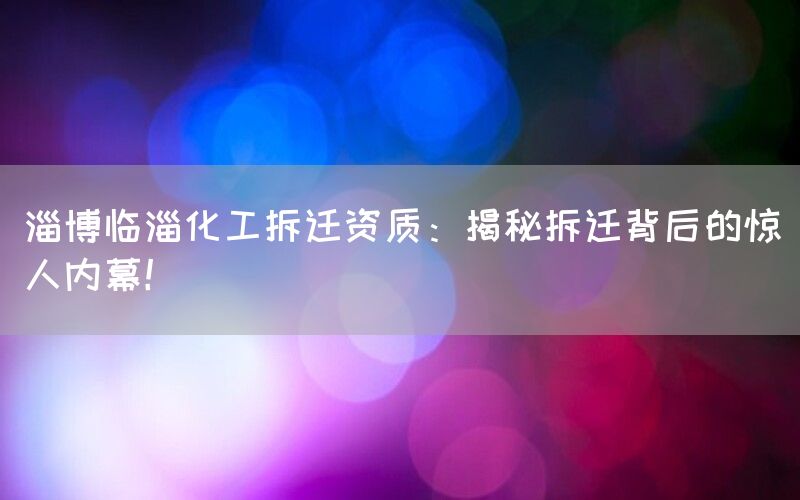 1. 淄博临淄化工拆迁概述让我们了解一下淄博临淄化工拆迁的基本情况。据了解,该项目是由当地政府为促进城市发展而启动的重要计划之一。在实施过程中出现了诸多问题。