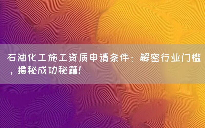 石油化工施工是一个高度专业化的领域,对企业的资质要求较高。在中国,申请石油化工施工资质需要满足一系列条件和要求。本文将为您揭示这些条件,并分享成功申请该资质的秘籍。