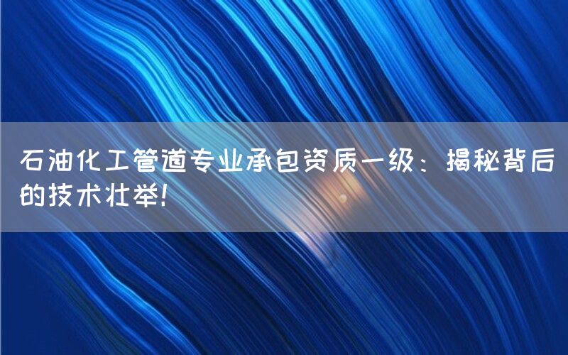 背后的技术壮举获得石油化工管道专业承包资质一级并非易事。它代表着企业在该领域具备了高水平的设计、施工和管理能力。这些能力是通过长期积累和不断创新所取得的。
