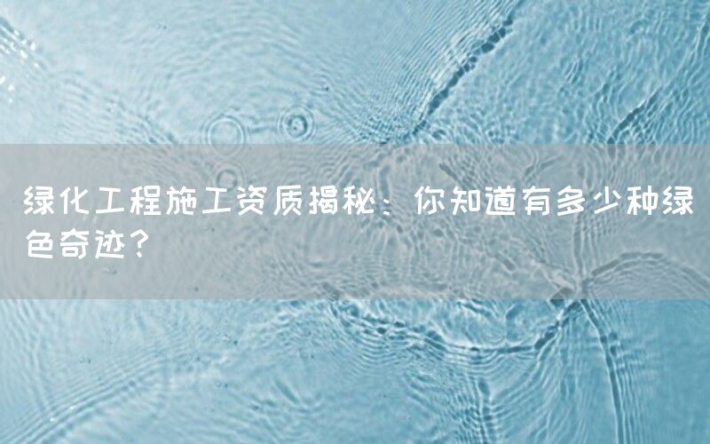 随着城市化进程的加快,人们对于环境保护和生态建设的重视度也越来越高。绿化工程作为一项重要的环境改善措施,扮演着塑造城市形象、提升居民生活质量的关键角色。在进行绿化工程施工之前,企业需要具备相应的资质才能合法开展相关业务。本文将揭秘绿化工程施工资质,并介绍一些令人惊叹的绿色奇迹。