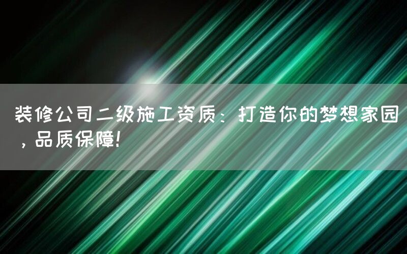 选择一家具备二级施工资质认证企业来打造你梦想中理想家园是明智之选。在这个领域竞争激烈、信息复杂多变的时代里, 我们拥有专业化服务、高品质施工、资质保障以及优秀的预算控制能力。无论您是新房装修还是旧房改造,我们都将以真诚、专业的态度为您提供最满意的服务。