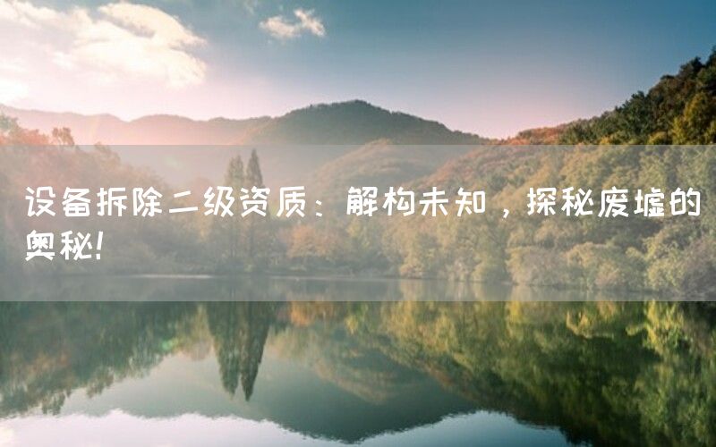 设备拆除二级资质是进行废墟探索和拆除工作的重要保障。通过巴洛仕集团有限公司提供的资质服务,企业可以获得专业、安全、高效的设备拆除合作。在解构未知、揭开废墟奥秘的过程中,我们不仅能够发现隐藏着的故事和历史,还可以为未来的发展创造新机遇。