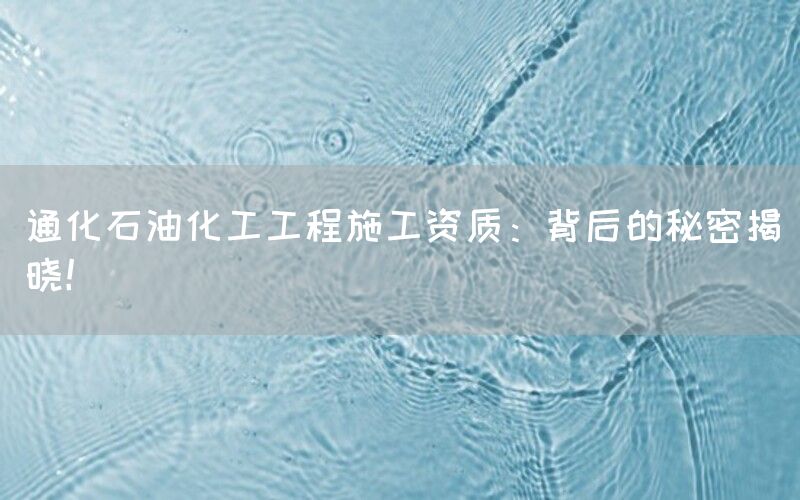 在中国的石油化工行业中,通化石油化工工程施工资质是一项重要的认证,它代表着企业在该领域具备一定实力和能力。很多人对于这个资质背后的秘密知之甚少。本文将深入探讨通化石油化工工程施工资质,并揭示其背后的真相。