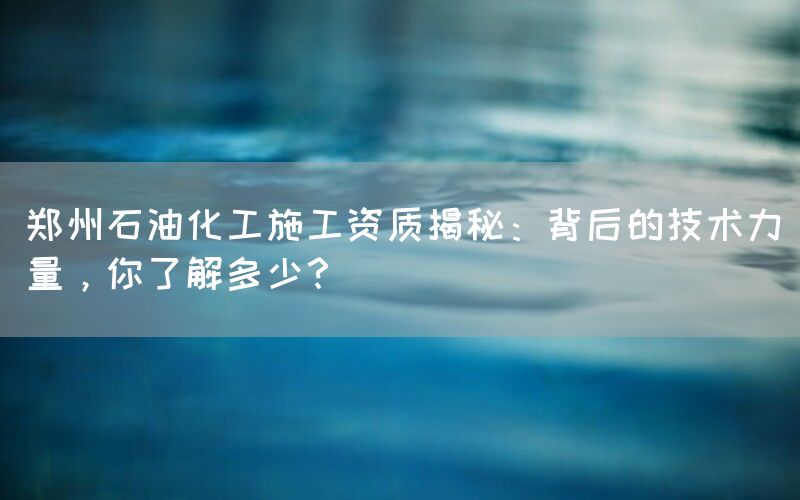 在郑州石油化工施工资质背后所蕴含的技术力量包括丰富的项目经验、先进的技术设备和专业团队。这些因素共同构成了企业在该领域能够顺利开展项目并取得成功所必需具备的条件。