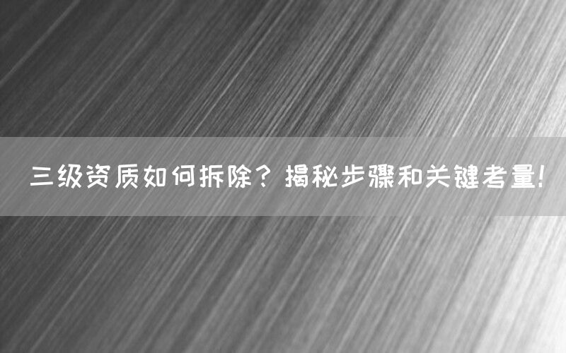 在建筑行业中,企业若要提升资质等级或拓展业务范围,有时需要拆除当前持有的资质等级。特别是对于持有三级资质的企业拆除资质可能是一个必经的步骤。本文将深入探讨三级资质拆除的具体步骤、关键考量因素以及相关合作方式,帮助企业在面对这一挑战时能够做出明智的决策。