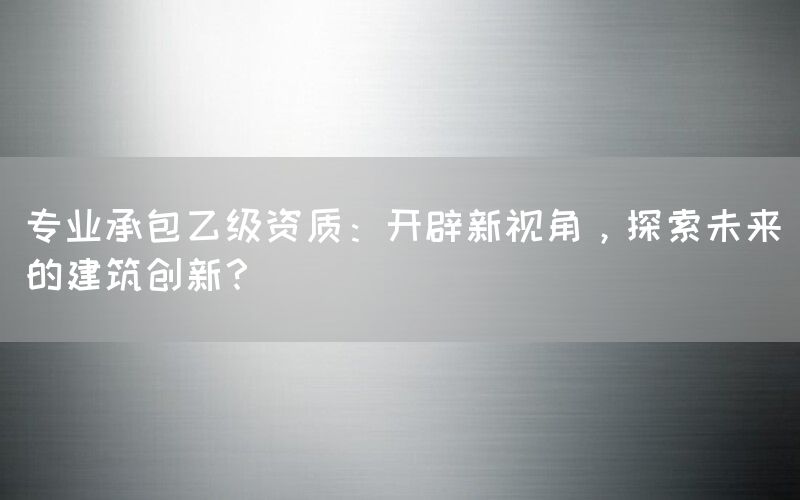 随着社会经济的快速发展和科技的不断进步,建筑行业作为现代化城市发展的重要组成部分,正经历着前所未有的变革和创新。作为专业承包乙级资质持有者,我们不仅致力于为客户提供高质量的建筑服务,更积极开拓新的建筑创新方向,以应对未来的挑战和需求。