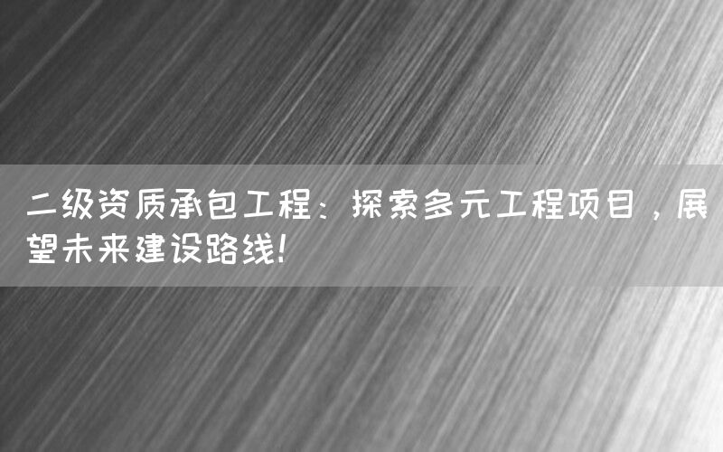 随着我国经济的快速发展和城市化进程的加速推进,建设领域对多元化工程项目的需求日益增长。作为具备二级资质的建筑总承包企业,如何有效探索多元工程项目,并展望未来的建设路线,成为了当前行业内的重要课题。