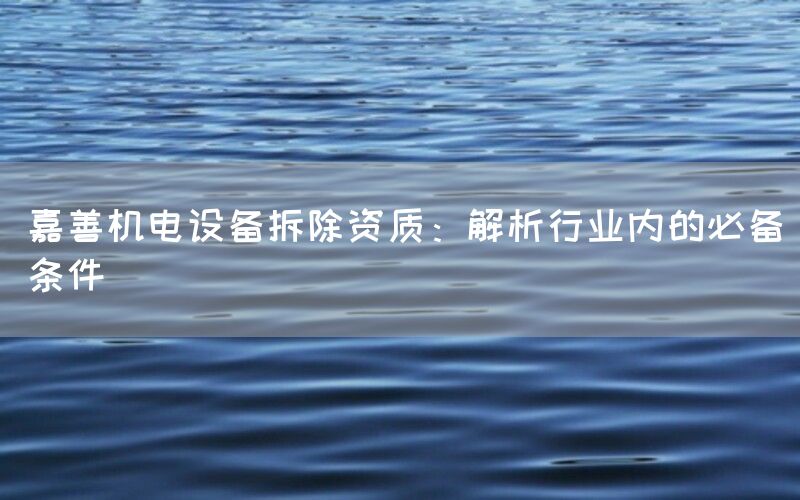 对于希望获得嘉善机电设备拆除资质的企业建议在申请前充分了解相关的法律法规和申请流程,确保自身条件符合要求,以便顺利通过审核并获得资质证书,为企业的发展打下坚实的基础。