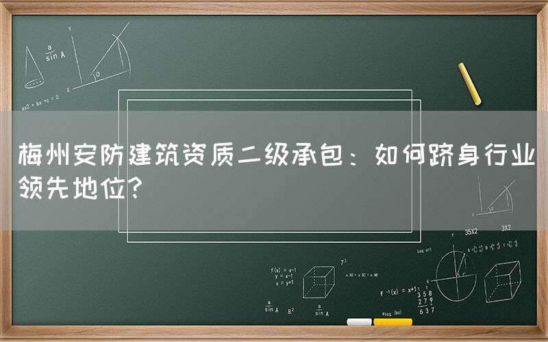 梅州作为广东省的重要城市,其建筑安防行业发展迅速,竞争激烈。要想在这个市场上脱颖而出,成为行业的领先者,需要综合考虑多方面因素,并采取有效的策略和措施。